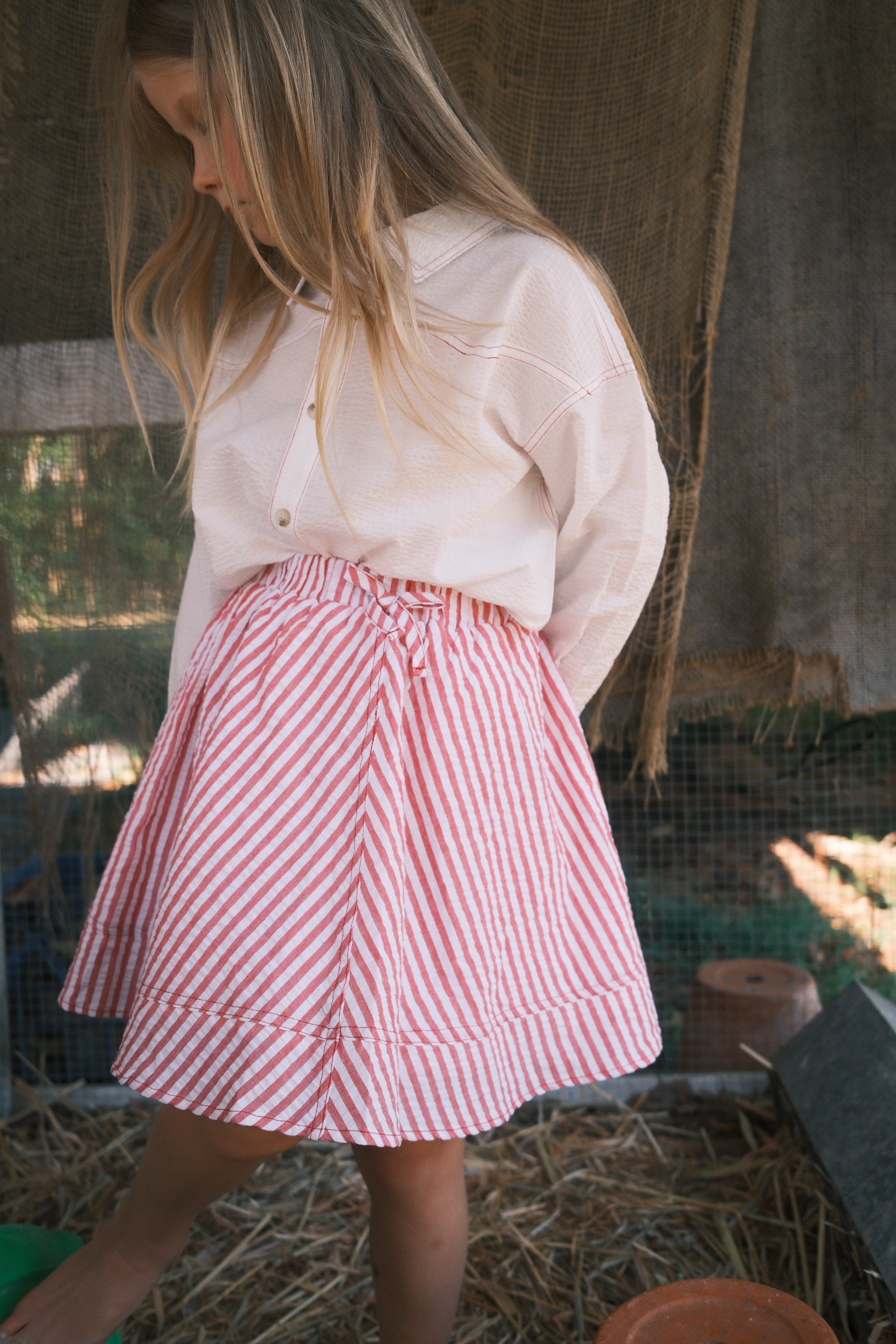 A new summer classic! This lightweight organic cotton seersucker shirt is perfect for long days in the sun.