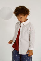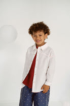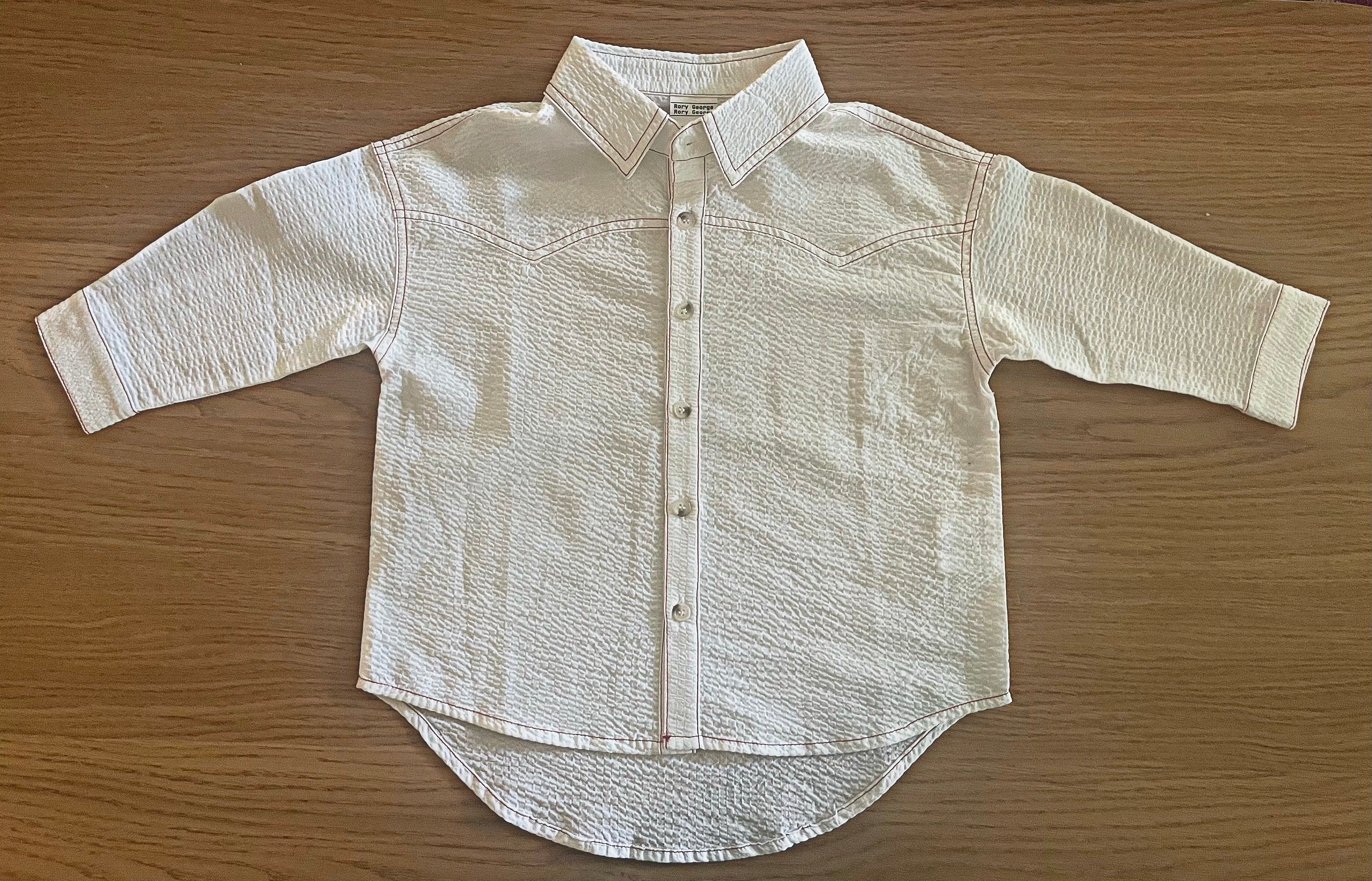009 Cotton Seersucker Shirt - White w Red Stitch